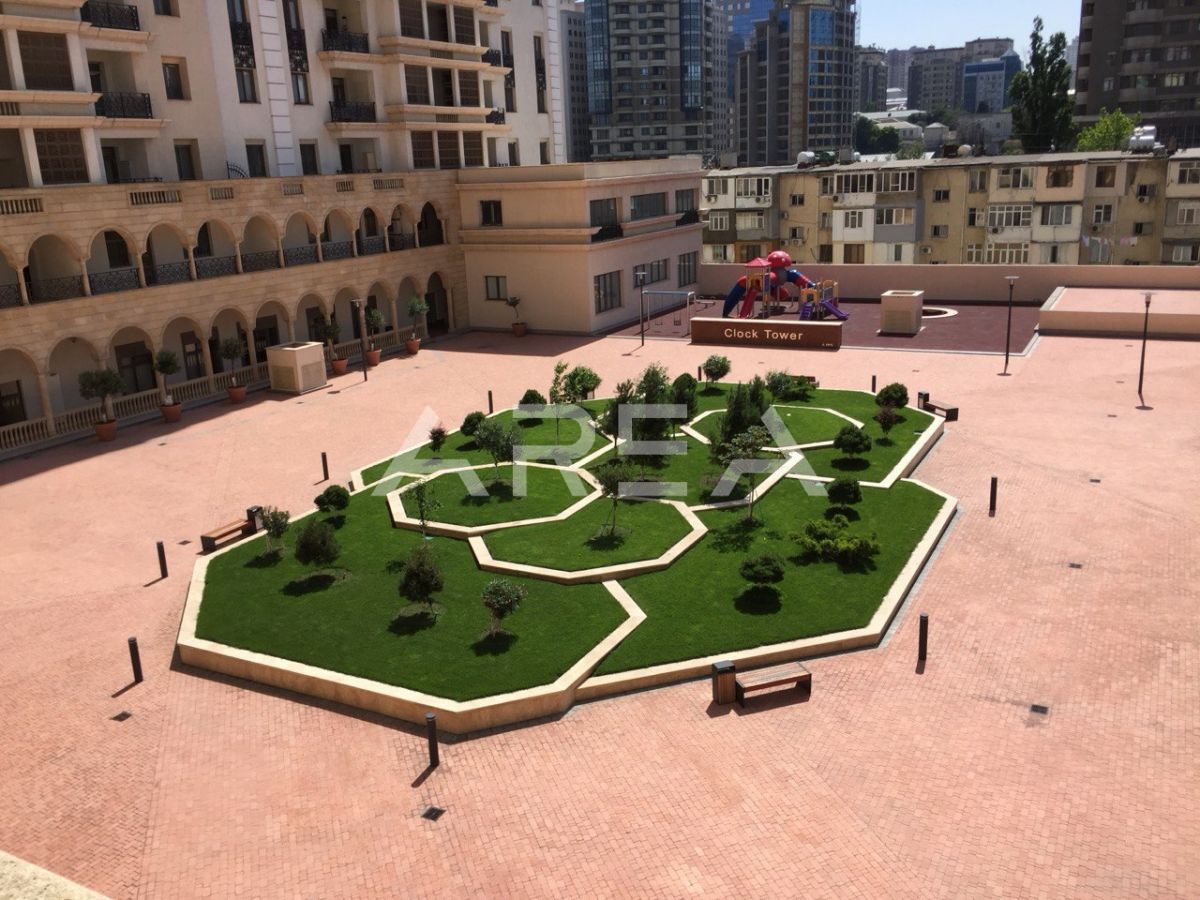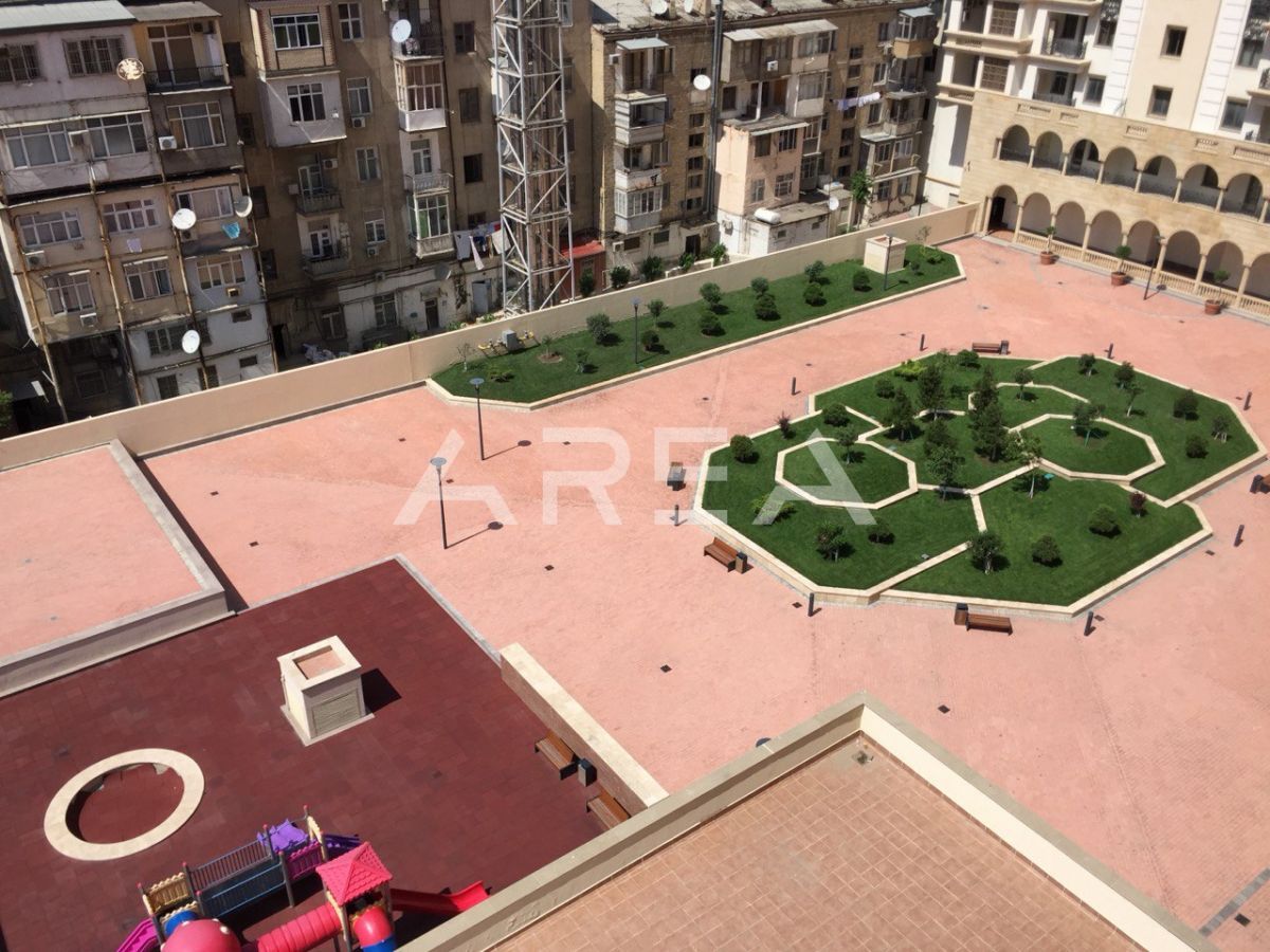 . Qonaq otağının tavanının hündürlüyü 7 metr təşkil edir. Mənzil Bakıxanov küçəsində yerləşir, prestijli və inkişaf edən bir ərazidədir.