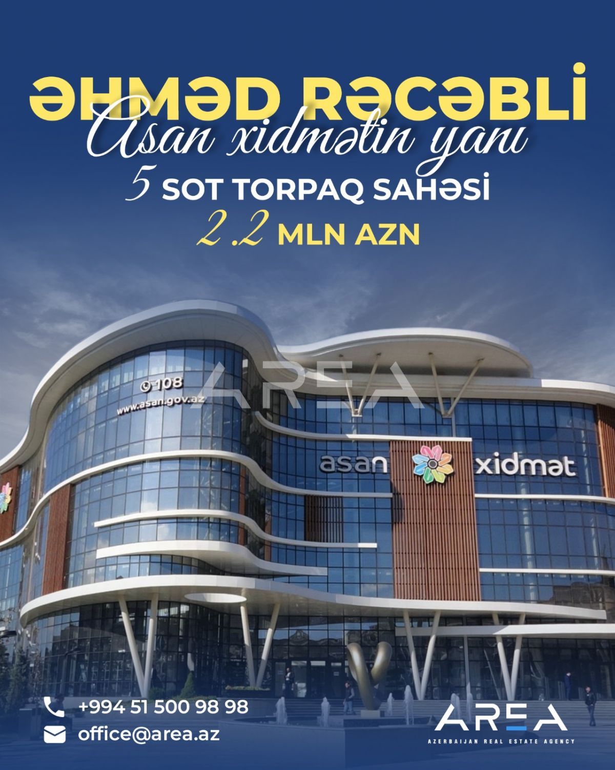 Siz də qısa müddətdə və uyğun qiymətə əmlak alqı-satqısını həyata keçirmək istəyirsinizsə, "AREA" şirkətinə müraciət edin!