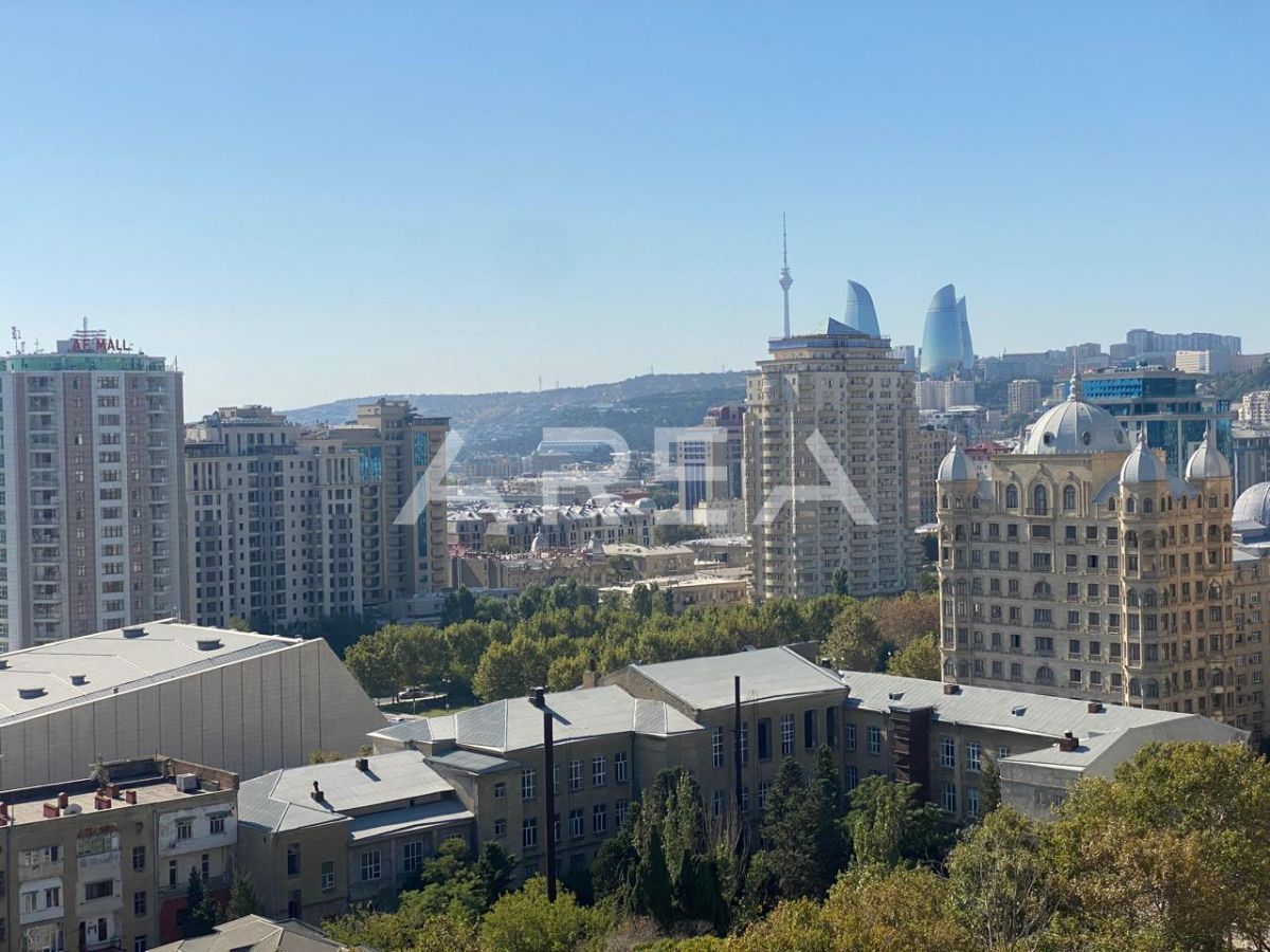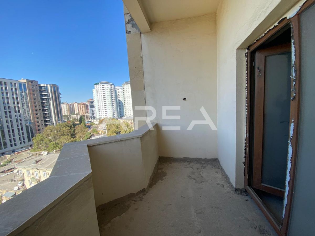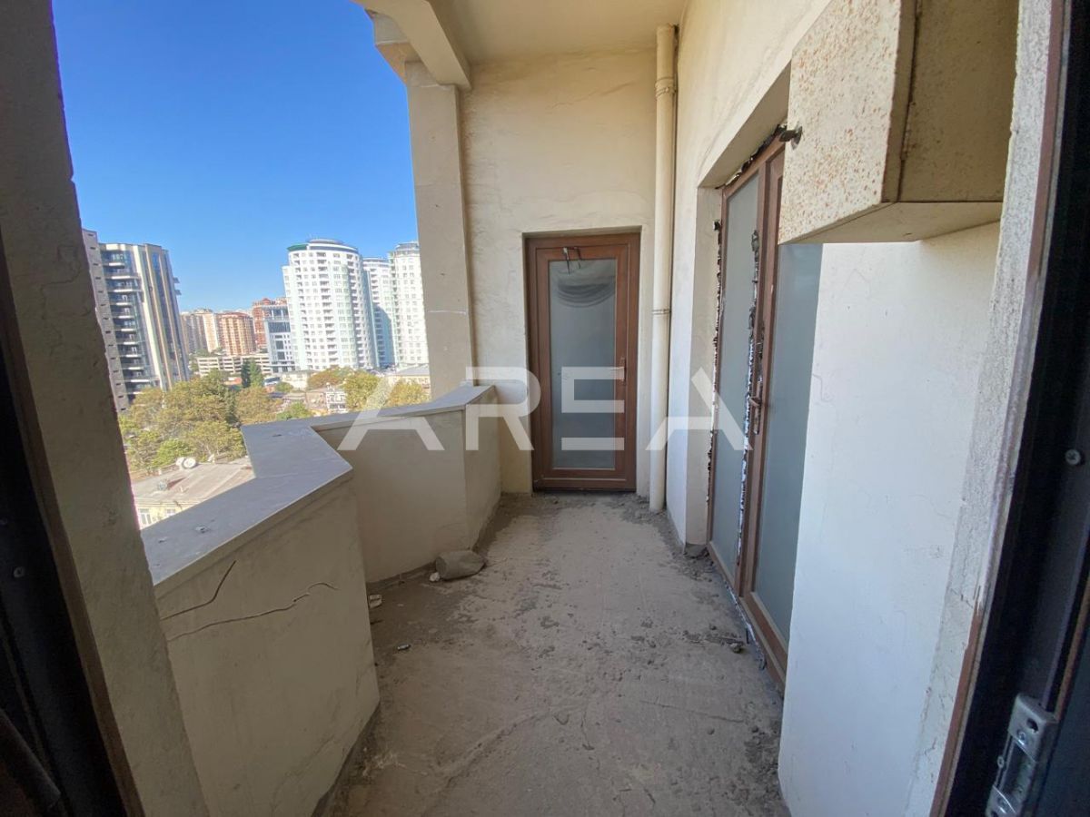 Next to the Heydar Aliyev Palace, in a prestigious building constructed in a monumental architectural style and fully clad with natural aglay stone, an excellent 3-room apartment in shell & core condition is offered for sale.