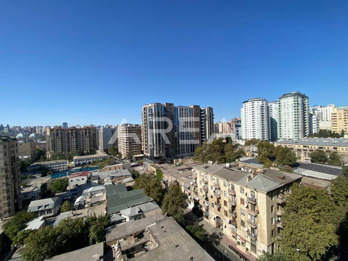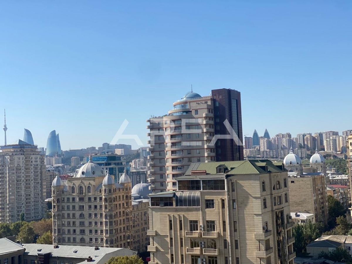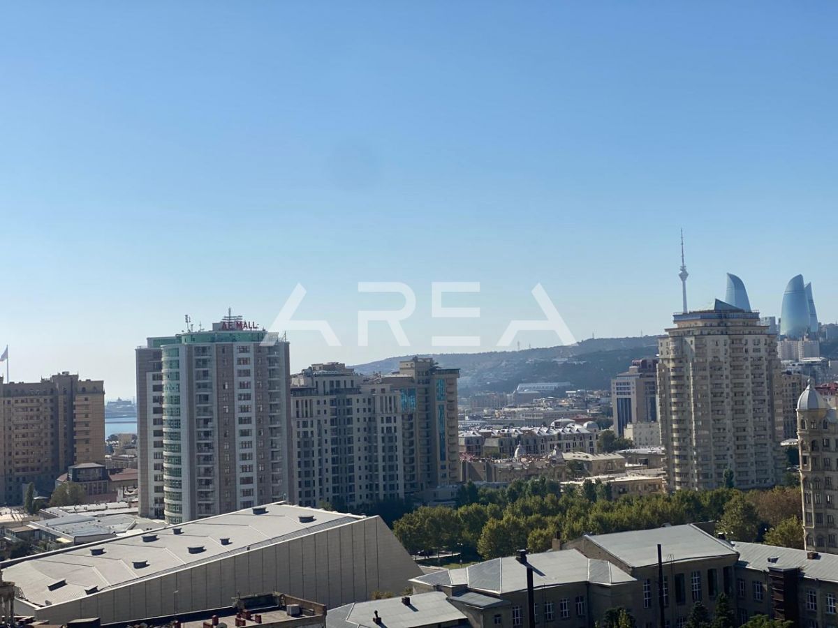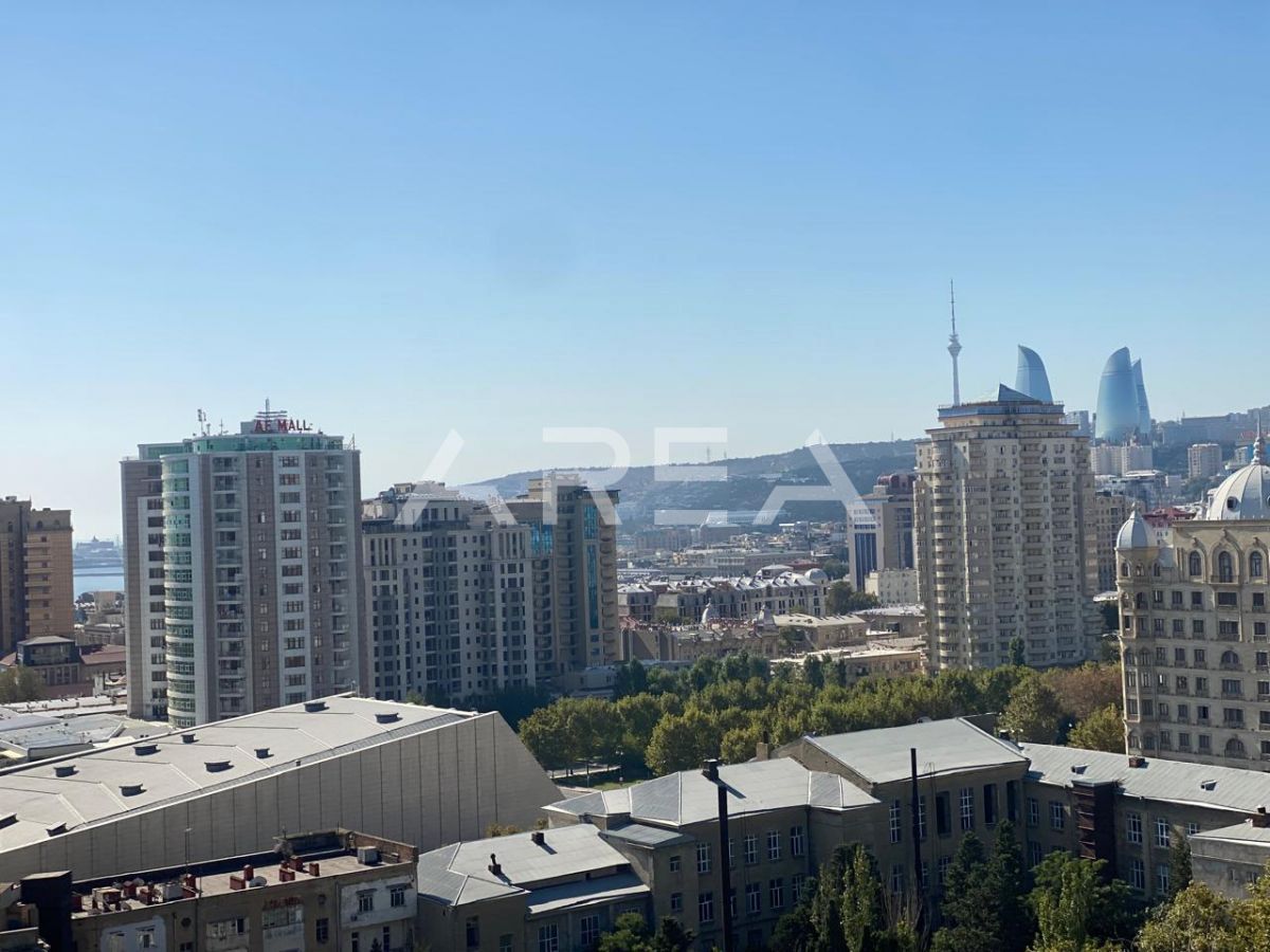 Next to the Heydar Aliyev Palace, in a prestigious building constructed in a monumental architectural style and fully clad with natural aglay stone, an excellent 3-room apartment in shell & core condition is offered for sale.
